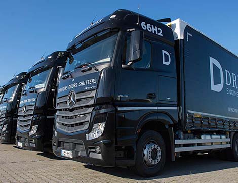 DRUTEX od zawsze stawiał na niezależność, elastyczność i sprawność działania. Dzięki temu firma oferuje dziś najkrótsze na rynku terminy realizacji zamówień wraz z dostawą, tylko 7 dni w całej Europie*, co stanowi ewenement wśród światowych producentów stolarki. Dysponuje nowoczesną flotą transportową składającą się z ok. 300 pojazdów. *warunkiem jest złożenie zamówienia w określonym trybie